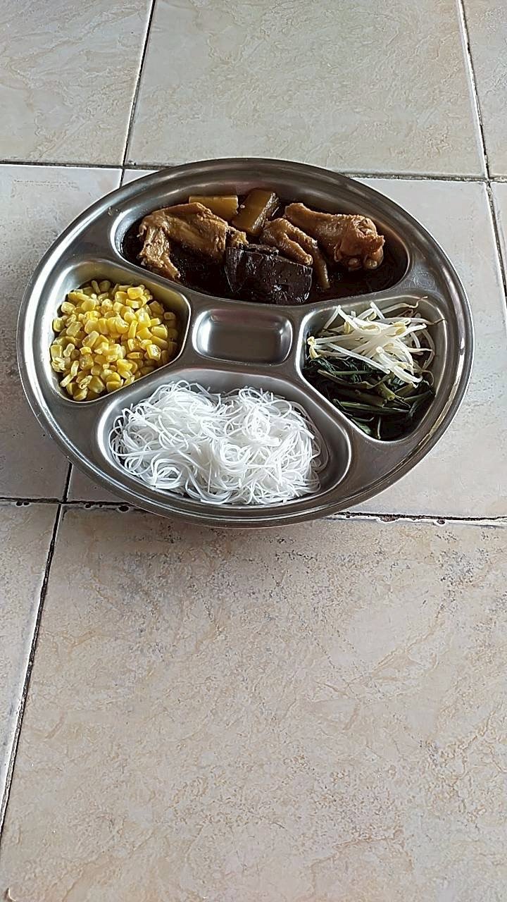 ผัดเครื่องแกงไก่+ต้มหมูใบชะมวง+ขนมหวาน (ข้าวโพดอบเนย)