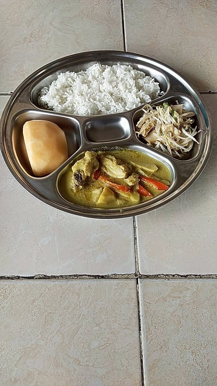 แกงกะทิไก่หน่อไม้+ผัดถั่วงอกเต้าหู้+ผลไม้ตามฤดูกาล (แคนตาลูป)