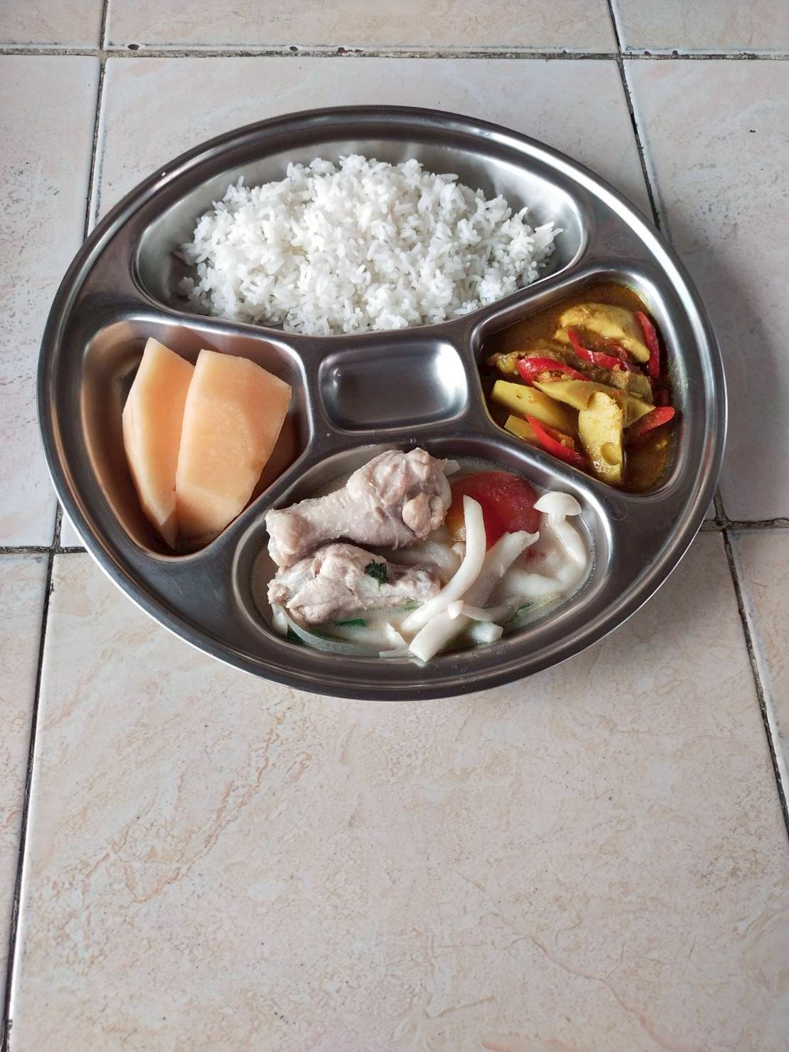 แกงมัสมั่นไก่มันฝรั่ง+ต้มจืดหมูผักกาดขาว+ผลไม้ตามฤดูกาล (แคนตาลูป)