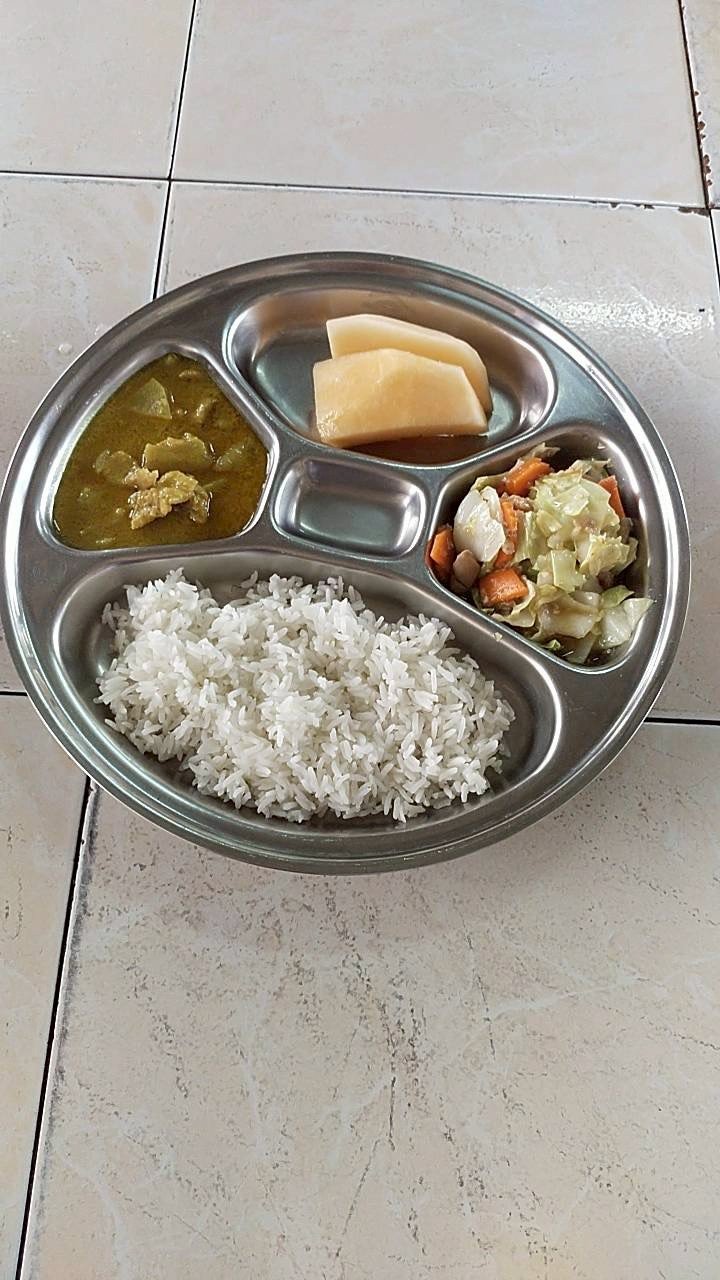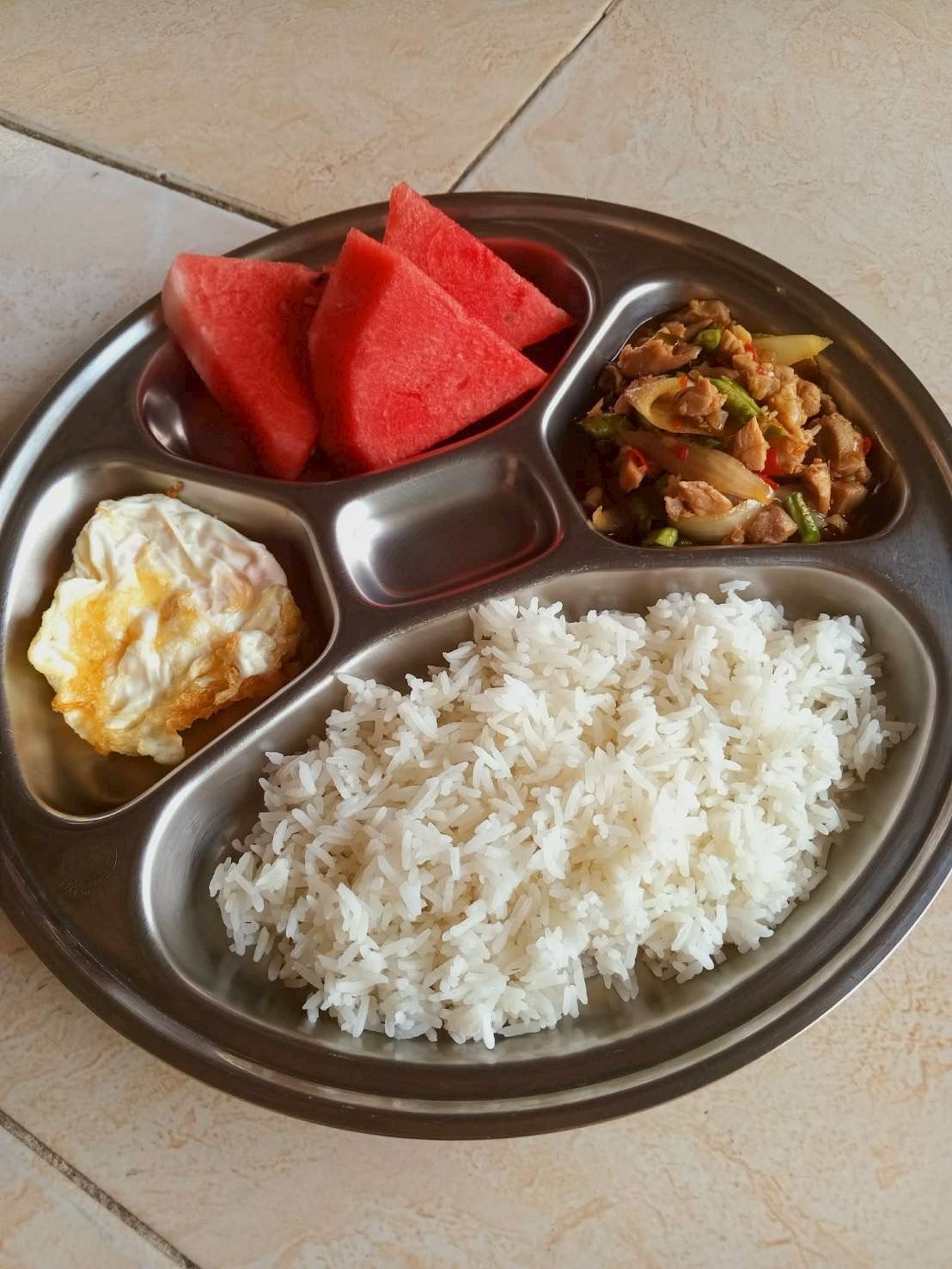 แกงกะทิหมูสับปะรด+ผัดไก่กะหล่ำปลี+ผลไม้ตามฤดูกาล (แคนตาลูป)