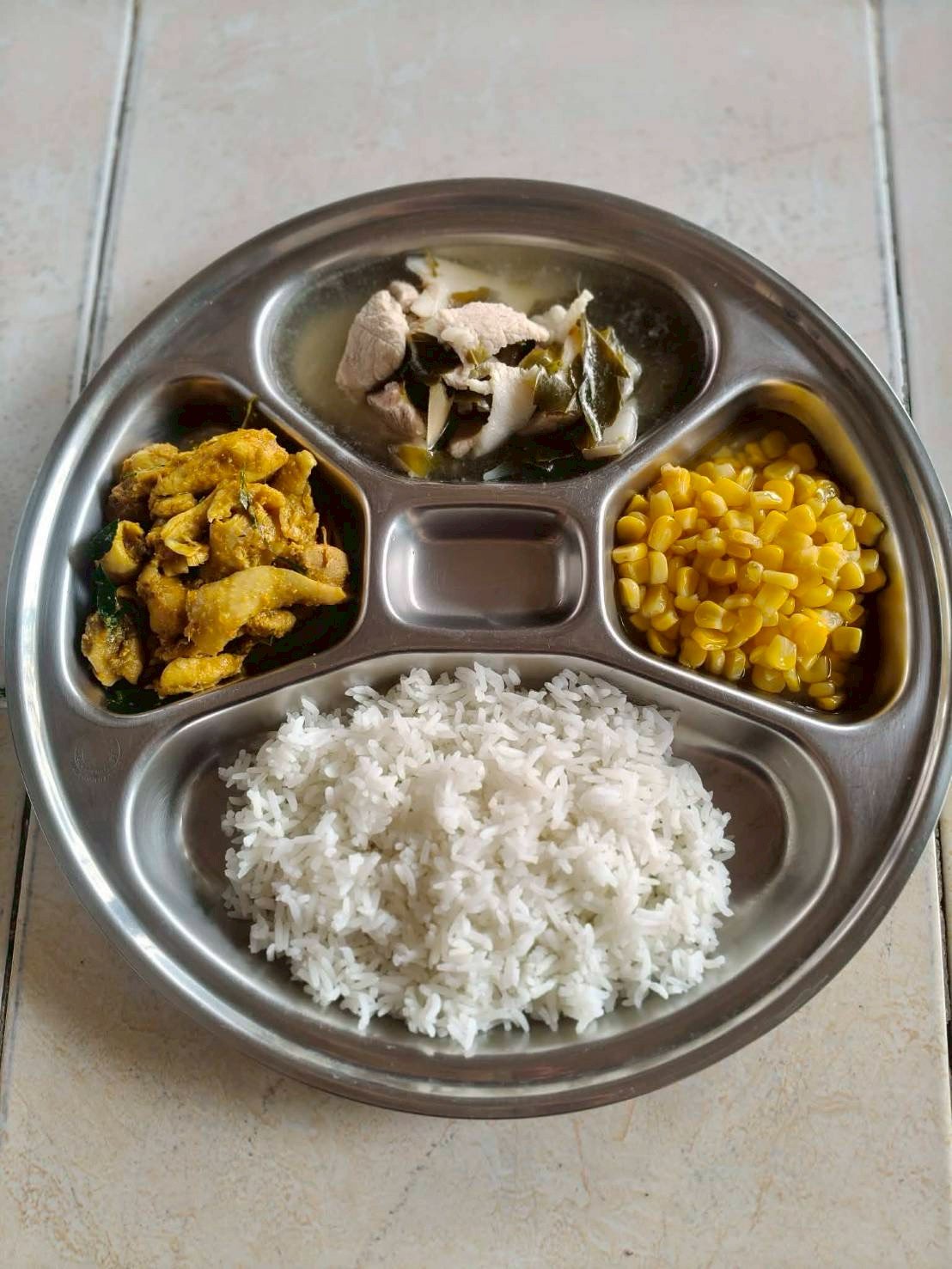 ผัดเครื่องแกงไก่+ต้มหมูใบชะมวง+ขนมหวาน (ข้าวโพดอบเนย)