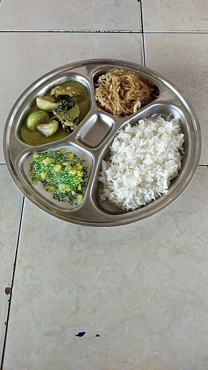 แกงกะทิไก่หน่อไม้+ผัดถั่วงอกเต้าหู้+ผลไม้ตามฤดูกาล (แคนตาลูป)
