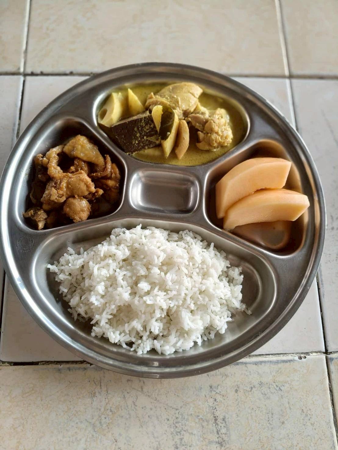 ผัดกระเพราไก่+ไข่ทรงเครื่ีอง+ผลไม้ตามฤดูกาล (แตงโม)