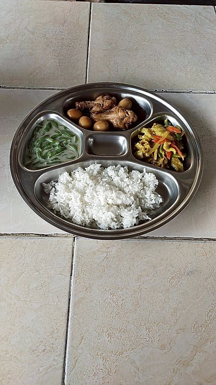 แกงกะทิไก่หน่อไม้ต้ม+ผัดถั่วงอกเต้าหู้ปลา+ผลไม้ตามฤดูกาล (แตงโม)