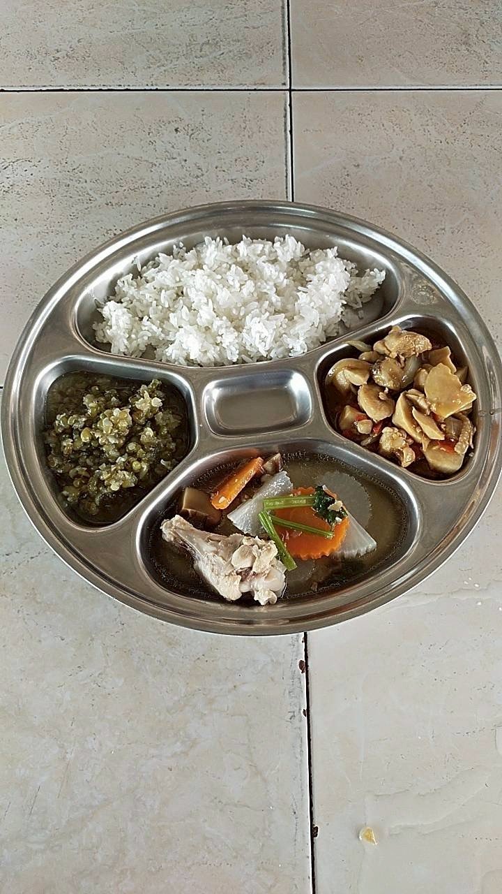 ผัดกะเพราไก่เห็ด + ต้มจืดไก่หัวไชเท้า + ขนมหวาน (ถั่วเขียวต้มน้ำตาล)